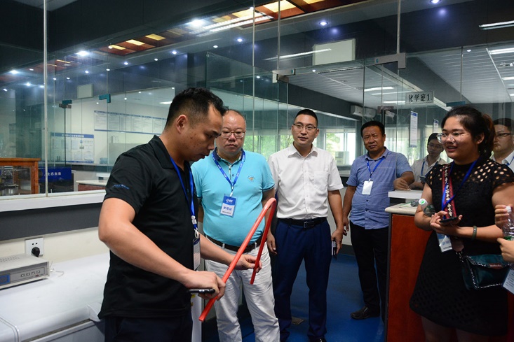 座談前,零售家裝事業(yè)部總經(jīng)理兼不銹鋼事業(yè)部副總經(jīng)理趙謙,不銹鋼事業(yè)部生廠部長蔣斌,零售家裝事業(yè)部經(jīng)理李軍陪同四川省室內(nèi)裝飾協(xié)會領(lǐng)導(dǎo)到廠區(qū)進(jìn)行了參觀。在公司領(lǐng)導(dǎo)陪同下,四川省室內(nèi)裝飾協(xié)會領(lǐng)導(dǎo)先后參觀了線管車間、管件車間、管件庫房和聚烯烴車間、質(zhì)量中心實驗室。在質(zhì)量中心實驗員的操作下,還現(xiàn)場演示了康泰紅藍(lán)線管彎折試驗。康泰紅藍(lán)線管優(yōu)良的質(zhì)量和抗壓性贏得了參觀嘉賓的一致好評。