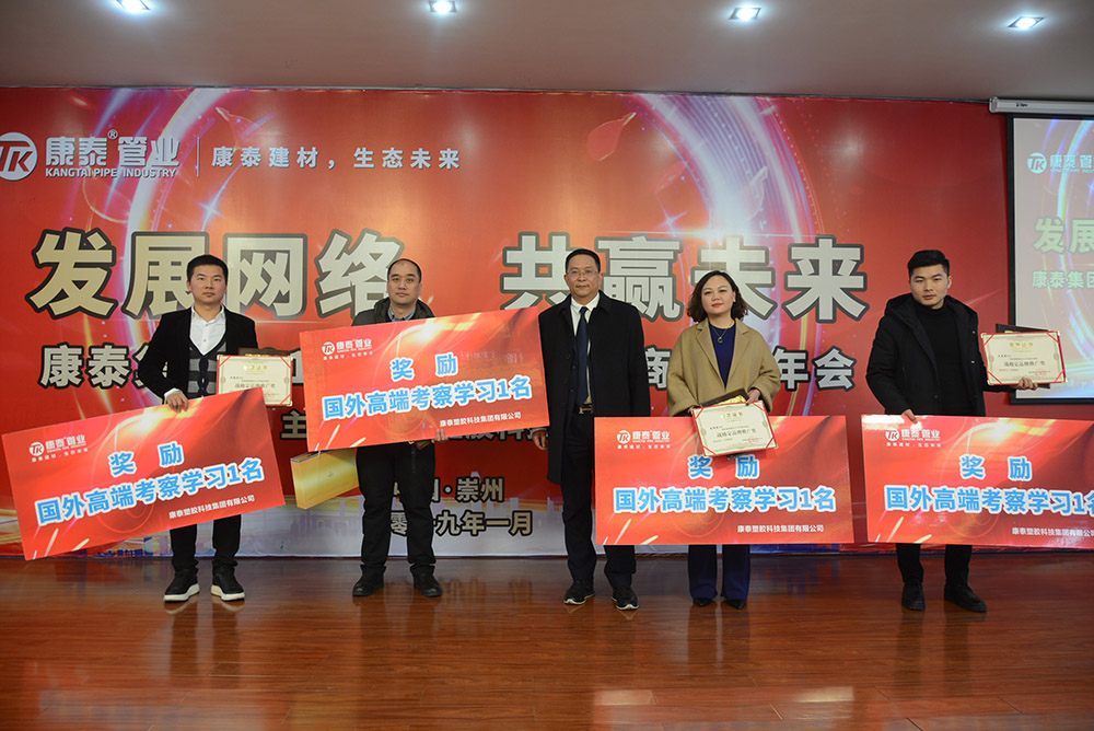 在結(jié)束完所有議程后,18時(shí)許,會(huì)議在熱烈的掌聲中圓滿閉幕。歲序更替,華章日新。2019年,對(duì)于康泰集團(tuán)來(lái)說(shuō)是充滿期待和希望的一年。康泰集團(tuán)致力于做“中國(guó)塑膠管道工程集采第一供應(yīng)商”的發(fā)展定位,以“為城市建設(shè)集成供應(yīng)生態(tài)管道系統(tǒng),管通全球”的企業(yè)使命,打造實(shí)現(xiàn)“百億康泰、百年康泰,中國(guó)民營(yíng)企業(yè)500強(qiáng)”,全面構(gòu)建實(shí)現(xiàn)品質(zhì)康泰、智能康泰、生態(tài)康泰、康泰+跨越發(fā)展。讓我們攜起手來(lái),共同開創(chuàng)康泰集團(tuán)更加美好的明天!
