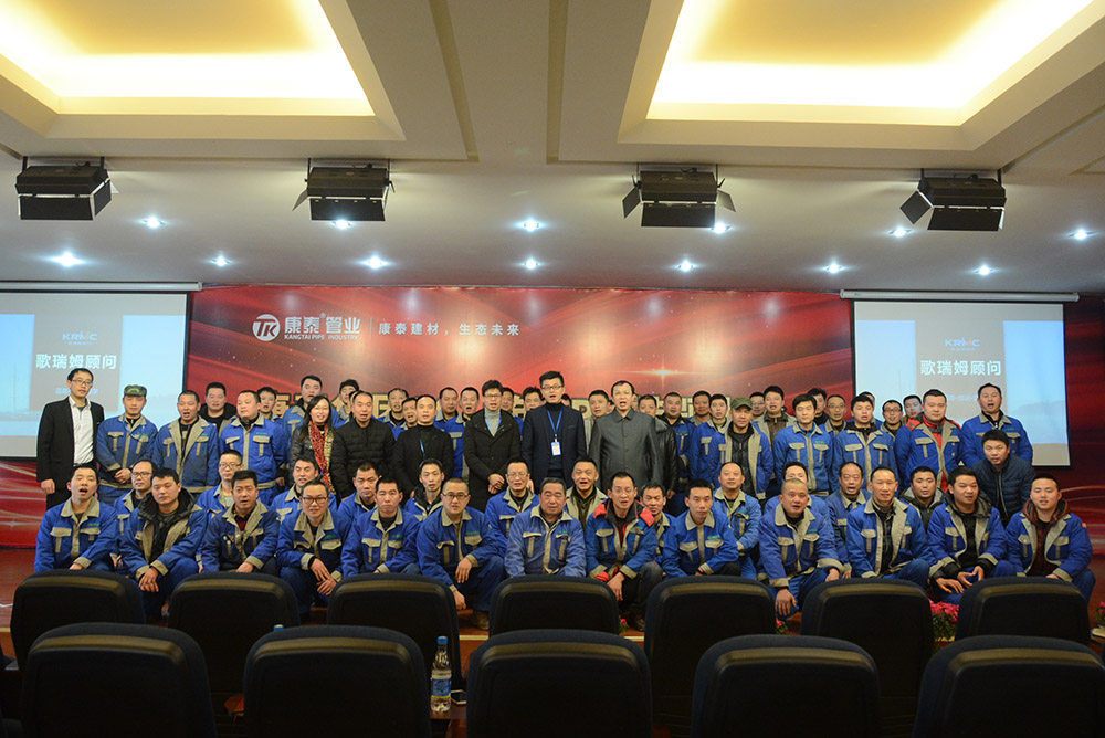 1月 11日下午,康泰集團(tuán)TPM項目結(jié)題大會在五樓多功能會議室召開。歌瑞姆管理技術(shù)服務(wù)有限公司董事長后小進(jìn)、顧問劉大永,以及康泰集團(tuán)副總裁張文霖,總裁助理張勇,生產(chǎn)中心副總監(jiān)李志堅,各車間主任、副主任、班組長、TPM項目組成員等80余人參加會議。