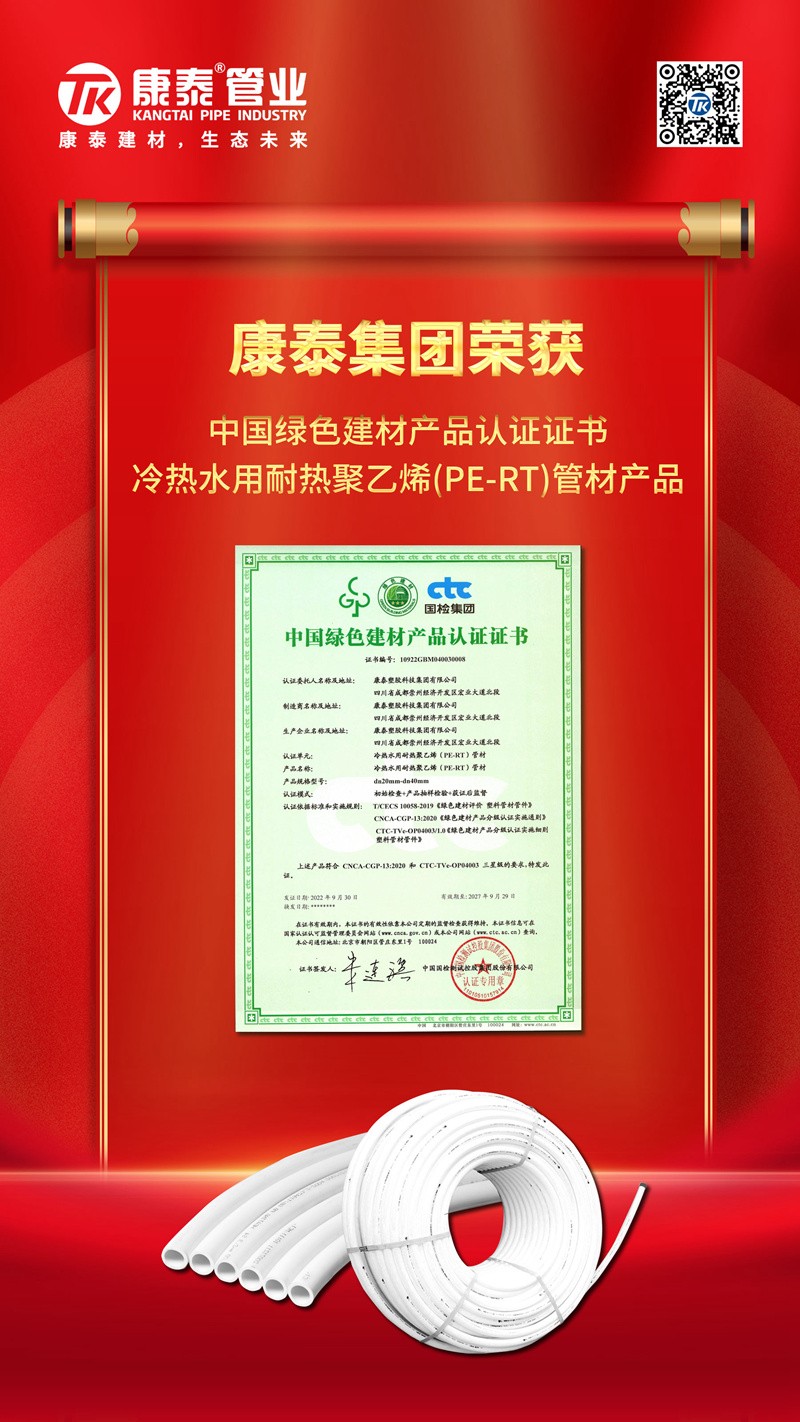 康泰塑膠:造綠色產(chǎn)品,享健康生活2022/10/11 6576近日,康泰塑膠的給水用聚乙烯(PE)管材、管件產(chǎn)品,燃氣用埋地聚乙烯(...read more -